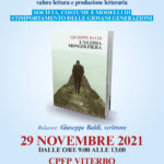 Lunedì 29 novembre si terrà il primo di una serie di incontri previsti dal progetto LIBeRIncontri, finanziato dalla Regione Lazio POR FSE 2014-2020. L'incontro sarà tenuto dall'autore Giuseppe Baldi presso la scuola professionale CPFP di Viterbo.