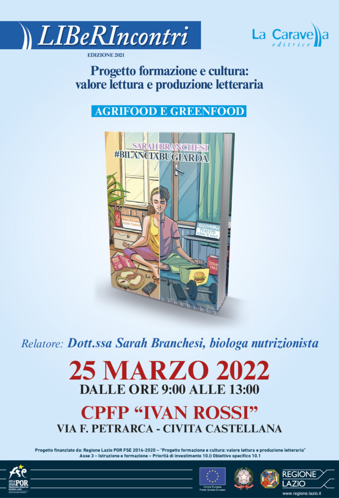 Giovedì 25 marzo e venerdì 26 marzo si terranno, presso gli istituti CPFP di Civita Castellana e l’Alberghiero di Viterbo, due incontri relativi al progetto LIBeRIncontri finanziato dalla Regione Lazio POR FSE 2014-2020. Il relatore sarà Sarah Branchesi, autrice e biologa nutrizionista.