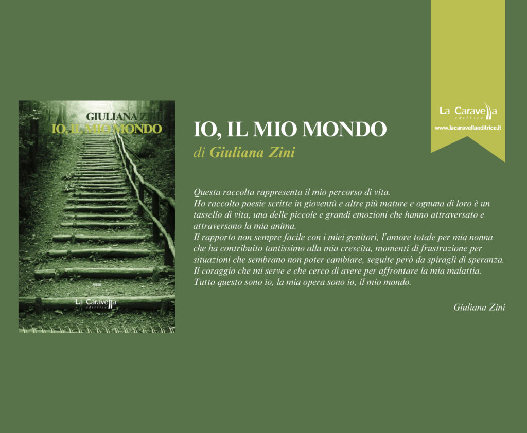Giuliana Zini ha settanta anni ed è originaria di un piccolo paese di campagna, Villafranca in Lunigiana, vicino a Massa Carrara. Attualmente vive a Milano. È sposata e ha due figlie. Ha conseguito il diploma di Ragioneria e ha lavorato all’I.N.P.S. fino al pensionamento. Nel 2009 le è stato diagnosticato il morbo di Parkinson e da dieci anni frequenta un’associazione onlus che aiuta chi soffre di questa malattia ad affrontarla meglio dal punto di vista fisico ed emotivo. Attraverso l’associazione ha potuto e può partecipare a tante diverse attività, tra cui arte, disegno, teatro, pilates e addirittura arrampicata! Tutto questo le ha dato la possibilità di riscoprire anche una sua vecchia passione, che aveva in gioventù, abbandonata poi per dedicarsi al lavoro e alla famiglia: la poesia. Così ha ricominciato a scrivere dopo tanti anni. Nel 2020 ha partecipato a diversi premi letterari, classificandosi sempre tra i finalisti.