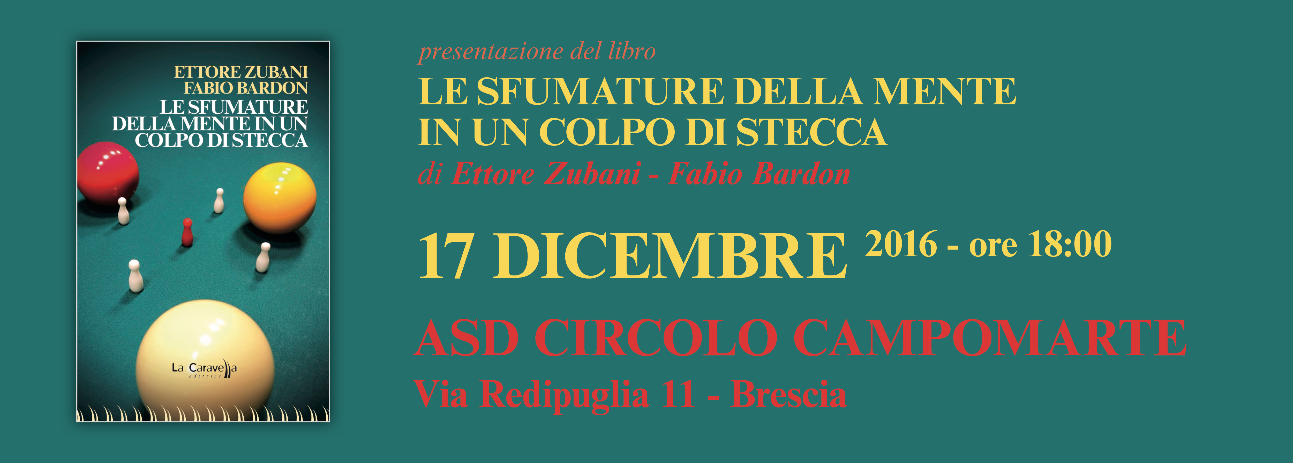 Presentazione LE SFUMATURE DELLA MENTE IN UN COLPO DI STECCA Pubblicato il 15 Dicembre 2016 da Redazione Share on Facebook Share Share on TwitterTweet Share on Pinterest Share Share on LinkedIn Share Share on Digg Share